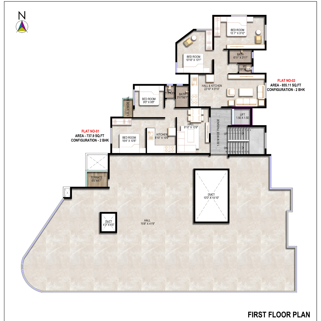 | 2 BHK Terrace Flats Flats | 05 Units | 05 Units | 1234 Sq.Ft to 1234 Sq.Ft | 51 Lakhs - 51 Lakhs * |